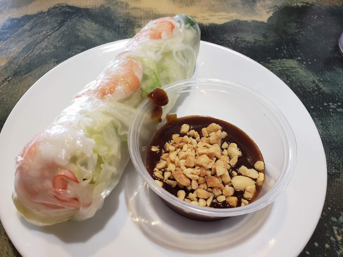 The food was excellent! I ordered a pho soup and 3 fried spring rolls (I ate one already before taking the pic) as an appetizer. The food came promptly and was delicious. Only one waitress it seemed and she managed to hold it down. It's pretty quiet in the restaurant, some music may have helped provide some cover while I slurped away, and the decor is nice. Would definitely eat again!